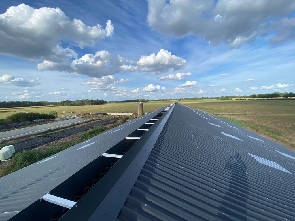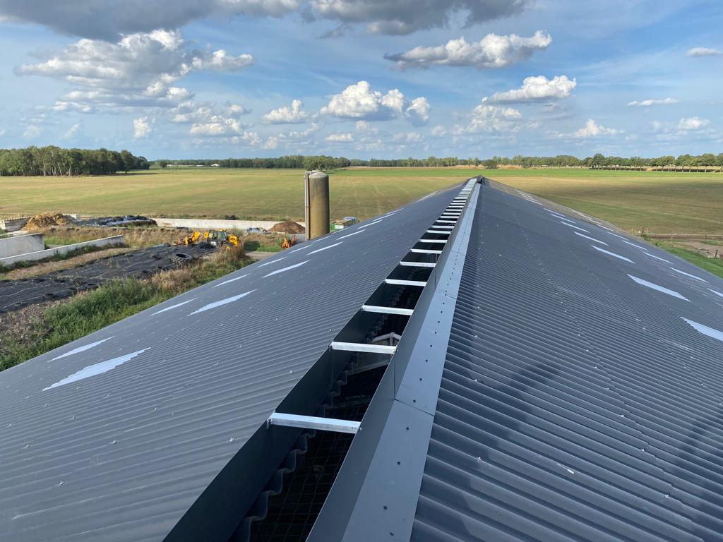 In Nederweert hebben wij een dakrenovatie van 1300 m2 uitgevoerd. Bunt Asbestsanering heeft de asbesthoudende golfplaten verwijderd van deze stal. Daarna hebben wij Eternit golfplaten gemonteerd en dubbelwandige lichtplaten toegepast. Het is afgewerkt met een stalen open nok met aluminium kokers.